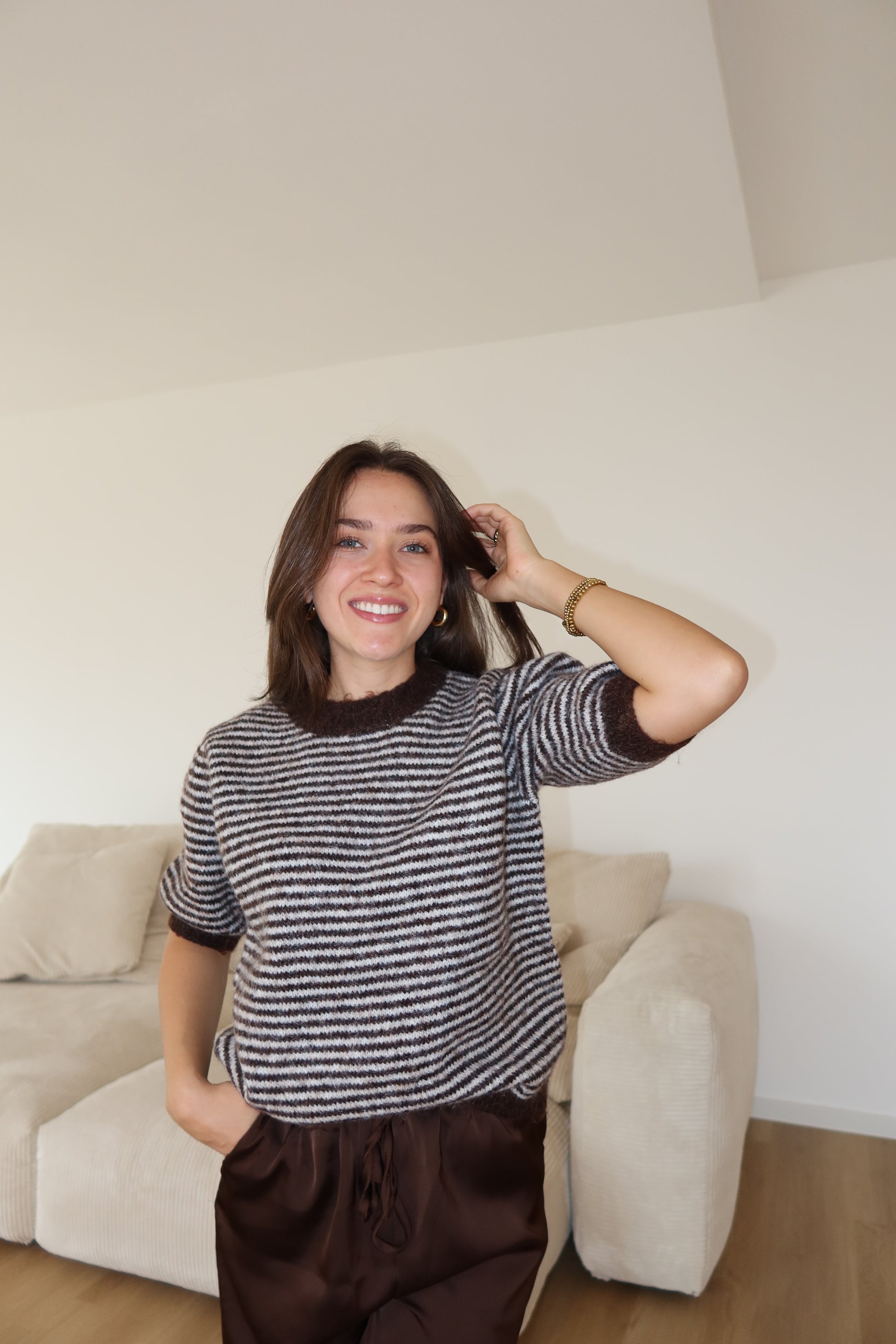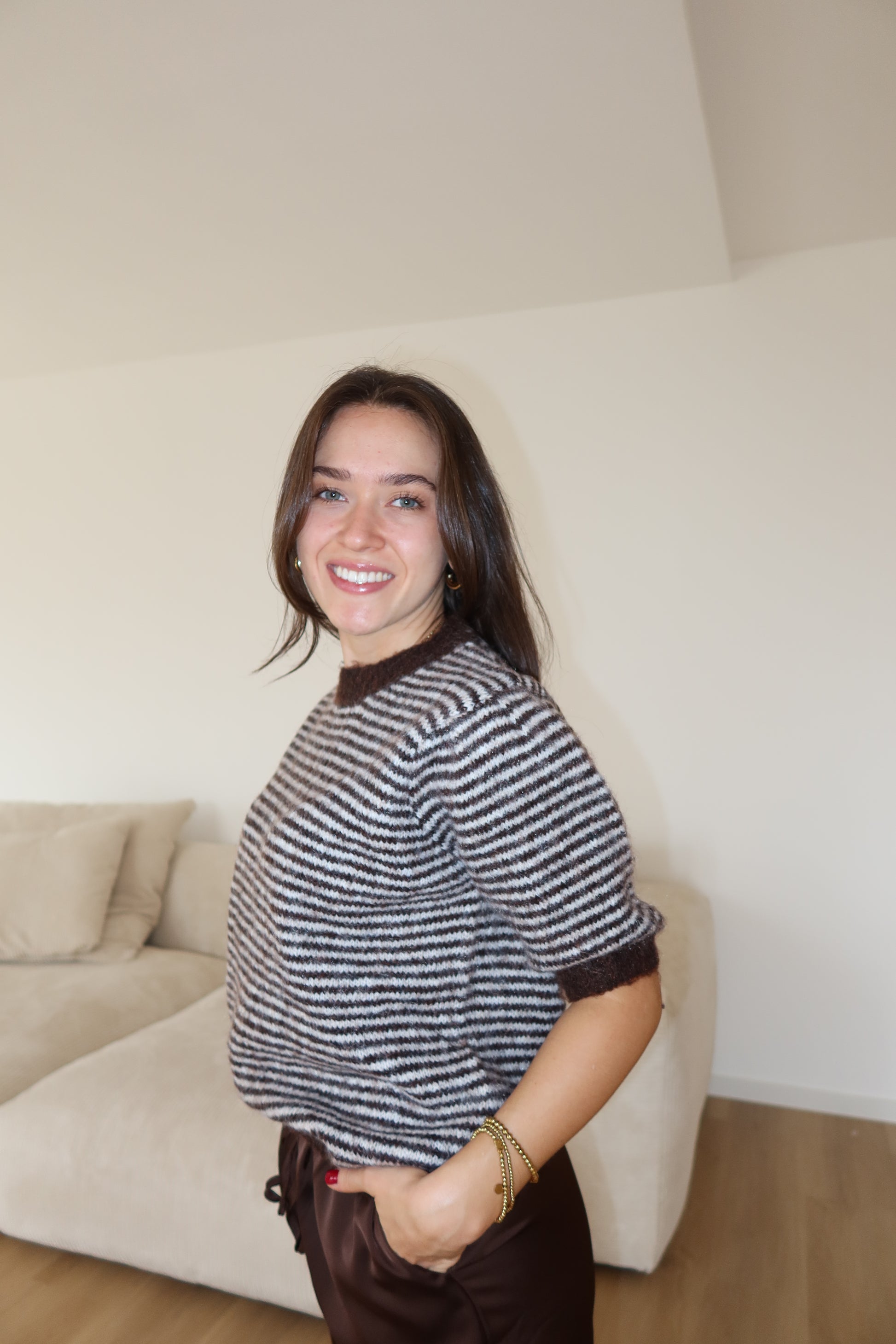 Kurzarm Pullover Stripe brown
