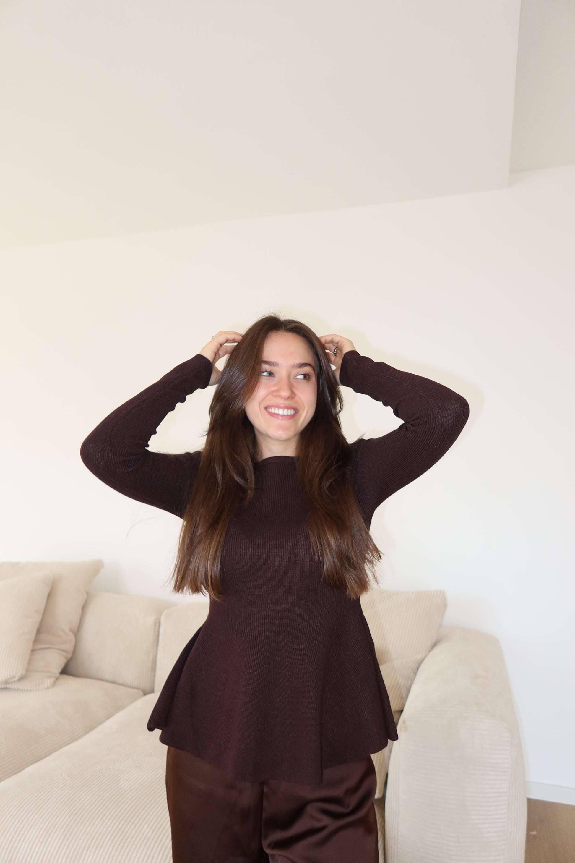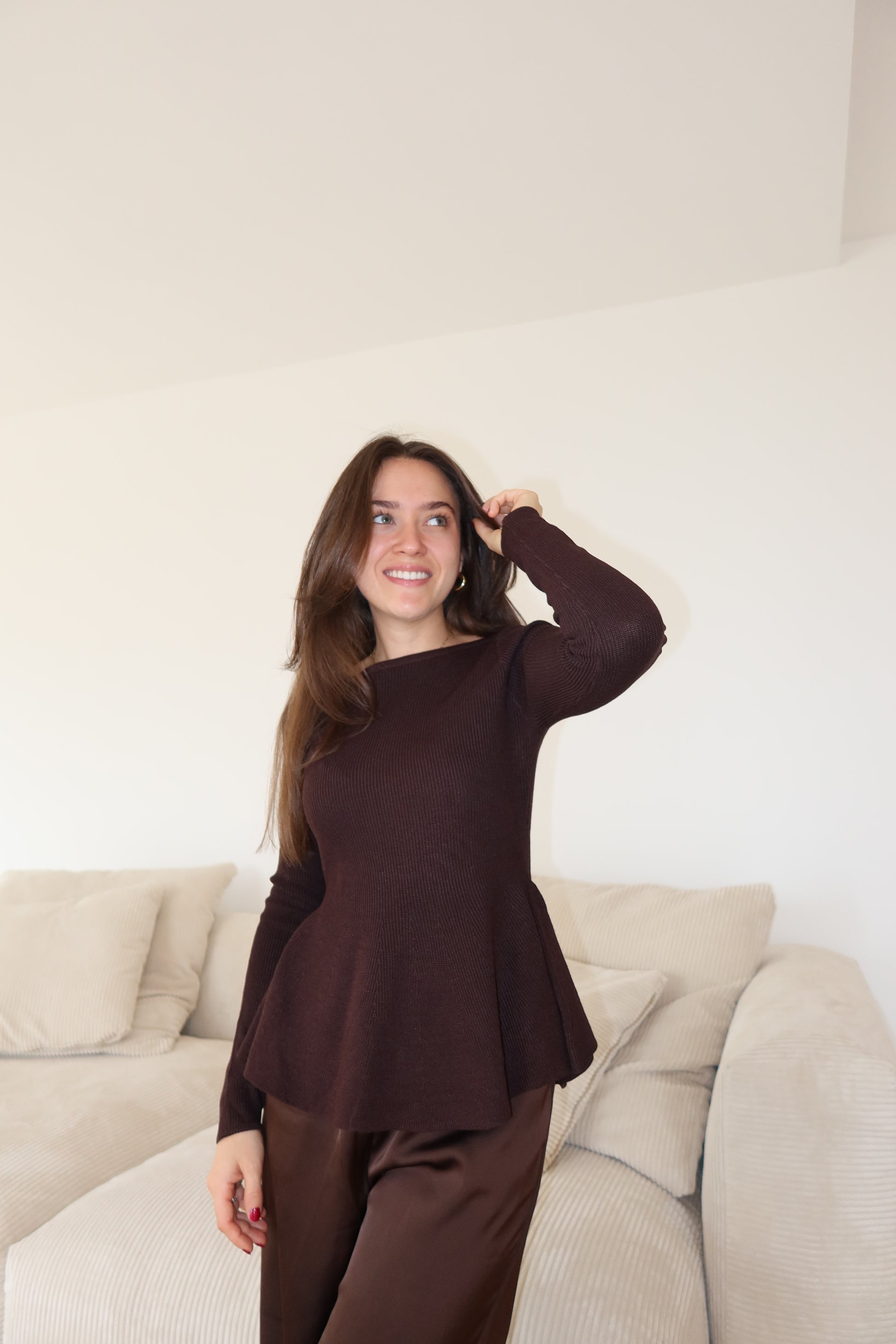 Strick-Oberteil Brown Rüschen